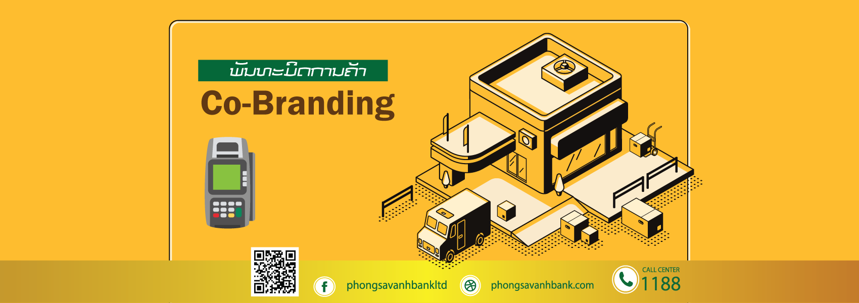 Co-Branding Card of Phongsavanh Bank is the card used to make a payment of goods and services of company in partnership of Phongsavanh Bank via EDC/POS machine of Phongsavanh Bank. It is convenient because the card holder does not have to carry a large amount of cash and will get the credit limit depending on the payment amount required make to the member of Phongsavanh Bank’s business partners.